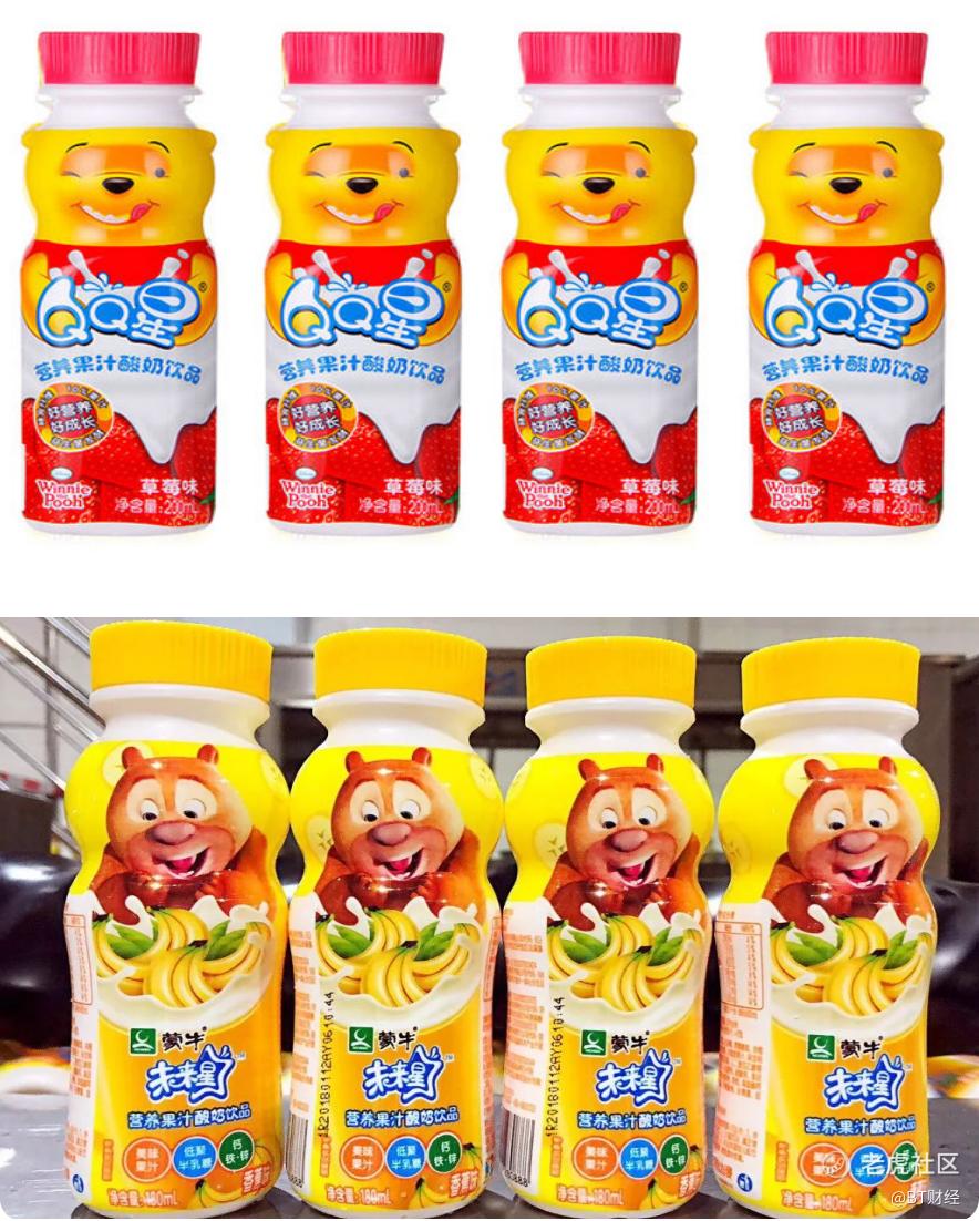 这不是蒙牛第一次成为伊利的被告,也不是蒙牛首次因产品包装、装潢侵权被伊利告上法庭。2012年,伊利推出“QQ星营养果汁酸奶饮品”,该产品采用迪士尼卡通形象包装和3D立体维尼卡通瓶设计,吸引儿童消费者。其口味采用草莓和香蕉双口味组合,符合儿童偏好。