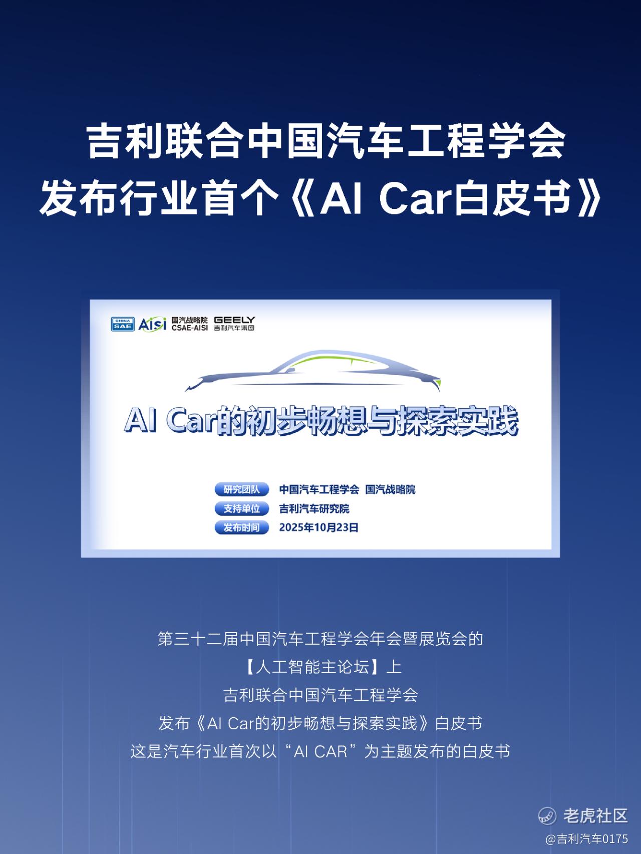 吉利联合中国汽车工程学会发布《AI Car的初步畅想与探索实践》白皮书