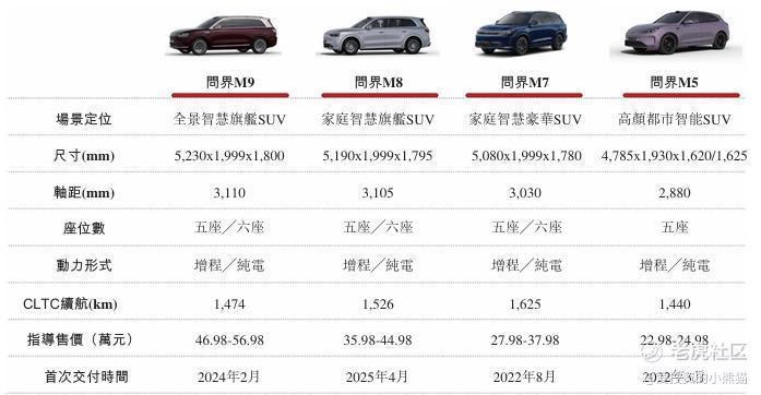 问界品牌有问界M9、问界M8、问界M7和问界M5四款车型,通过差异化定位实现市场覆盖,以精准价格梯度与场景化功能组合,全面抢占高端用户市场。