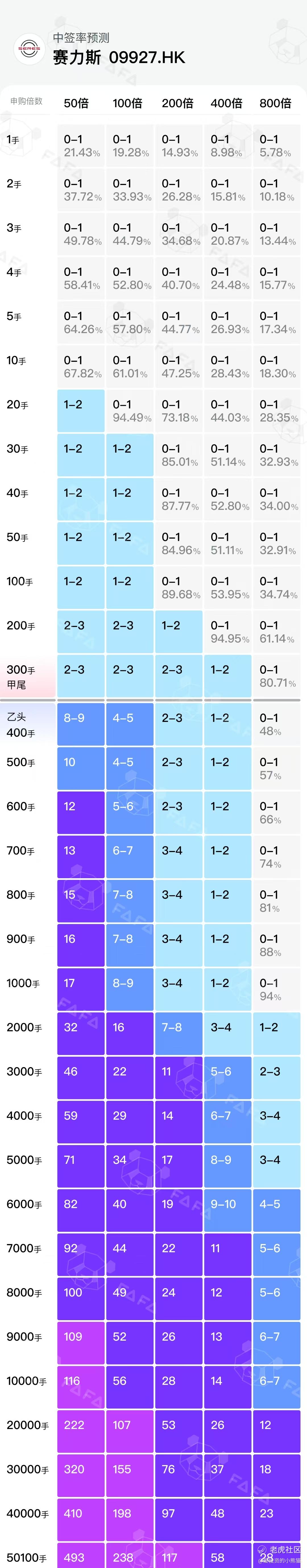 赛力斯本次IPO采用港交所「机制B」模式,公开发售与国际配售比例固定为1:9,无回拨机制。关于一手中签率方面,无论孖展多少倍,公配都是10%,按照20万人来参与预估一下,一手中签率15%!这个是大盘股,中签率会高很多。