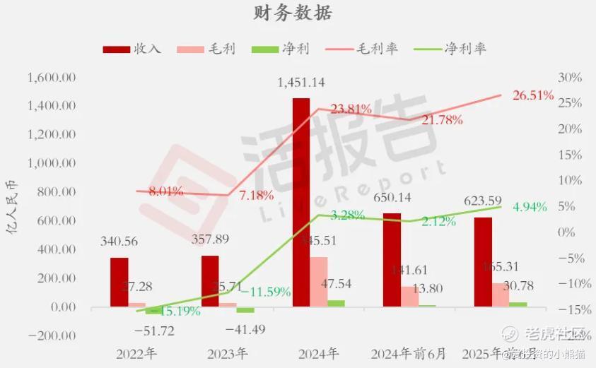 净利分别约为人民币-51.72亿元、-41.49亿元、47.54亿元、13.80亿元、30.78亿元,2025年前6月同比+123.08%;