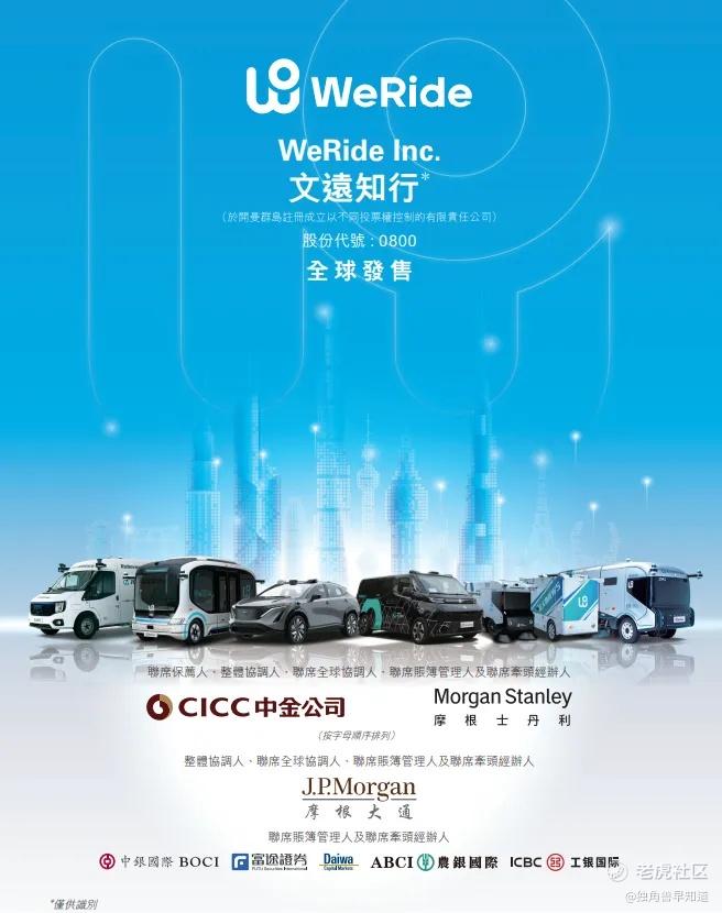 文远知行-W(00800.HK)发布公告,公司拟全球发售8825万股发售股份,中国香港发售股份441.25万股,国际发售股份8383.75万股(以上可予重新分配及视乎超额配售权行使与否而定);2025年10月28日至11月3日招股,预期定价日为11月4日;公开发售价将不会高于每股发售股份35.0港元,每手买卖单位为100股,中金公司及摩根士丹利为联席保荐人;预期A类普通股将于2025年11月6日开始在联交所买卖。 $文远知行(00800)$ $文远知行(WRD)$