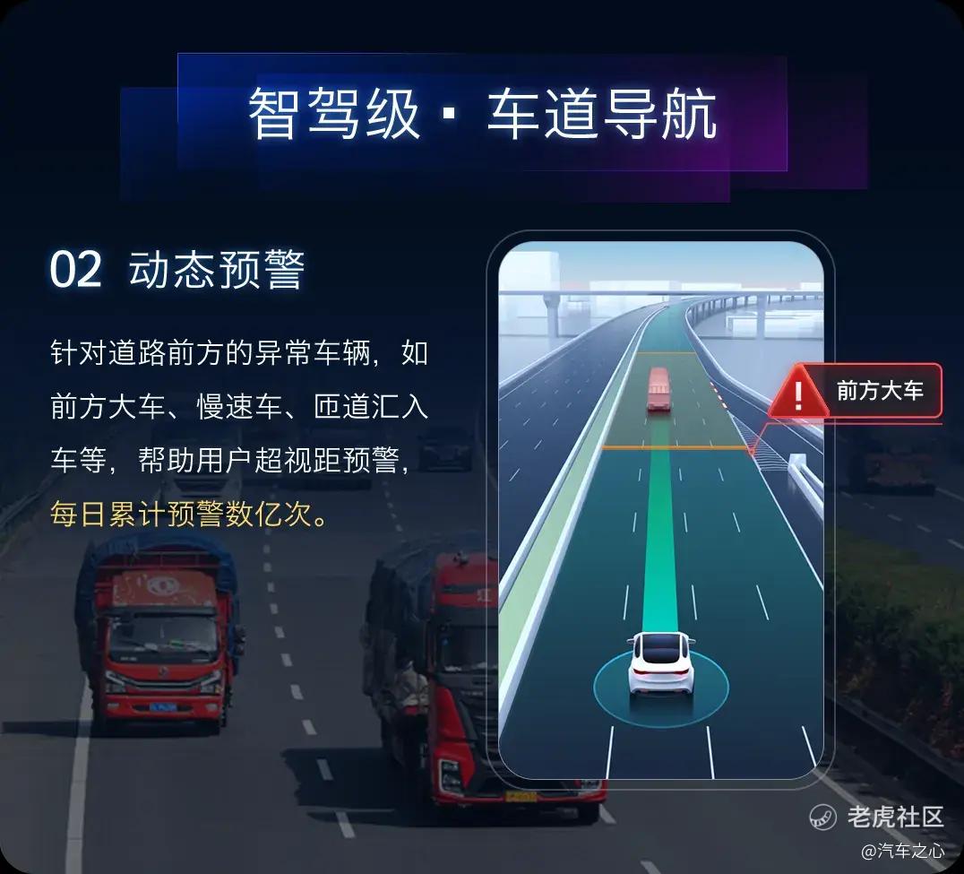 目前各大图商正在用众源数据和实时更新机制,为智驾兜住安全底线。百度地图的智驾级车道导航,能在高速场景中针对施工改道、事故占道等突发情况,实时推送车道级预警信息,辅助智驾提前避让、提前接管,避免「最后一秒急变道」的风险。