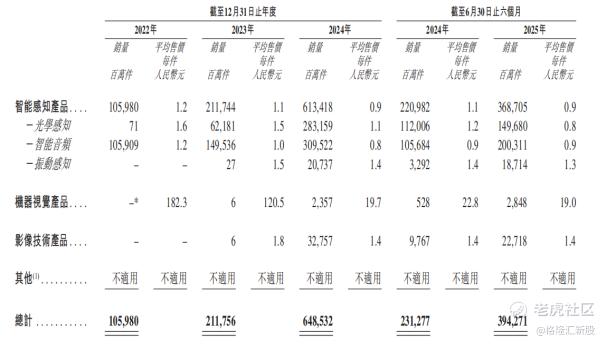 从产品价格来看,2022年,智能音频产品的平均售价为1.2元/件,2023年则降至1元/件,降幅为16.7%,2024年进一步降至0.8元/件。光学感知产品的售价也呈现类似的趋势。