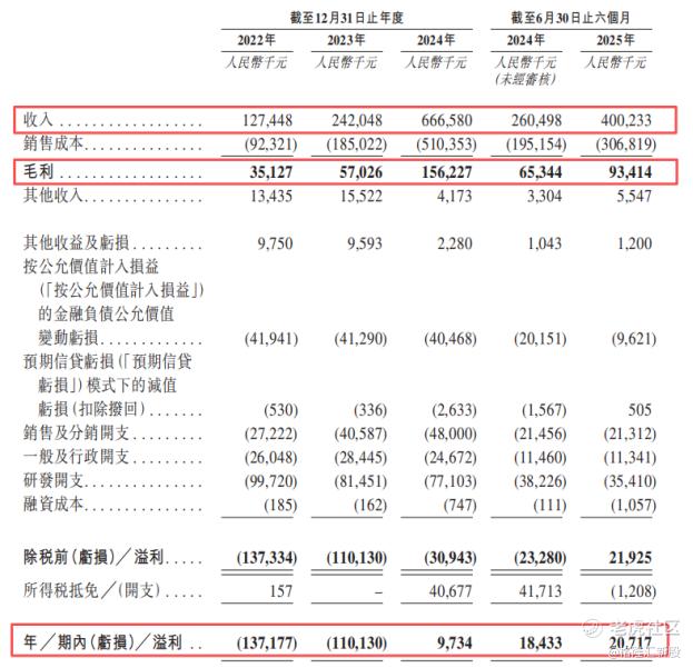2022年、2023年、2024年和2025年1-6月(报告期),公司的收入分别为1.27亿元、2.42亿元、6.67亿元、4亿元;净利润分别为-1.37亿元、-1.1亿元、973万元、2072万元。