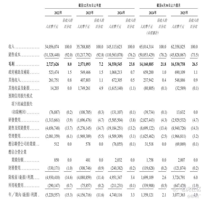 2022年至2025年上半年,赛力斯的毛利率分别为8.0%、7.2%、23.8%、26.5%,同期净利率分别为-15.2%、-11.6%、3.3%、4.9%,截至2025年6月30日,公司账上现金及现金等价物共有216.6亿元,资金储备充足。