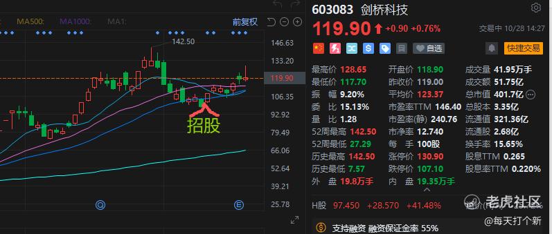 2. 剑桥这波几乎是开卷考试,招股第一天,A股一个涨停板我就觉得他稳了,第二天又上涨3.91%,第三天,也是我们发策略的那天,微跌0.52%,问题不大,因为之前已经涨出足够的安全垫。