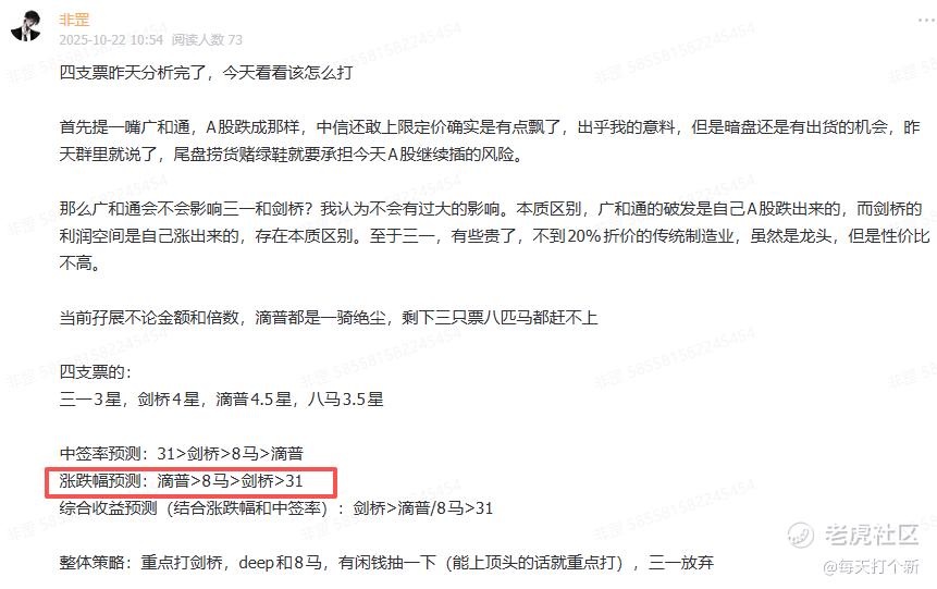 我们最终的策略是:重点打剑桥,滴普科技和八马茶业,有闲钱抽一下(能上顶头的话就重点打),三一放弃。