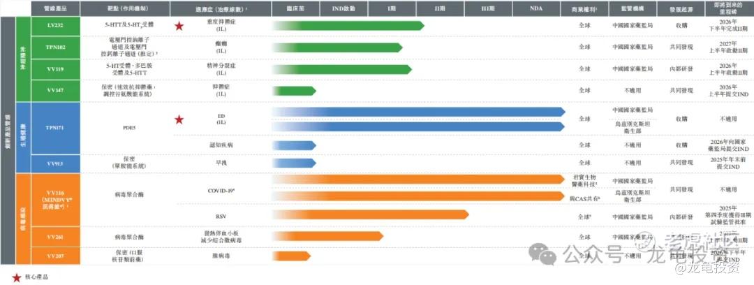 公司两大核心产品LV232和TPN171,LV232是一款双靶点5-羟色胺转运体/5-羟色胺3(“5-HTT/5-HT3”)受体调节剂,用于治疗重度抑郁症。而TPN171是一款用于治疗勃起功能障碍(“ED”)的5型磷酸二酯酶(“PDE5”)抑制剂。公司还有四款候选药物处于临床阶段,三款候选药物处于临床前阶段。