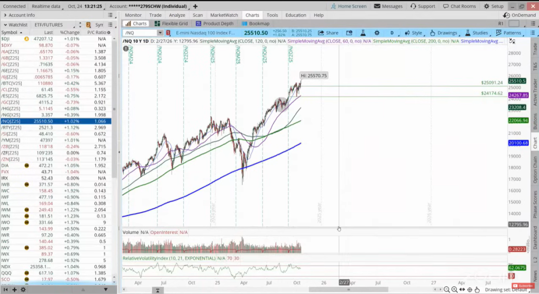 周五大盘强势上攻,再度创下新高,表现极为抢眼。Jackson老师表示,CPI数据的改善成为行情的主要推动力,让市场情绪持续升温。当前周线继续走高,收在25500点的高位,但他也提醒,指标在周线、月线和日线层面均处于超买区,若后续财报不给力,可能在月线层面形成压力,增加年末回调的风险。