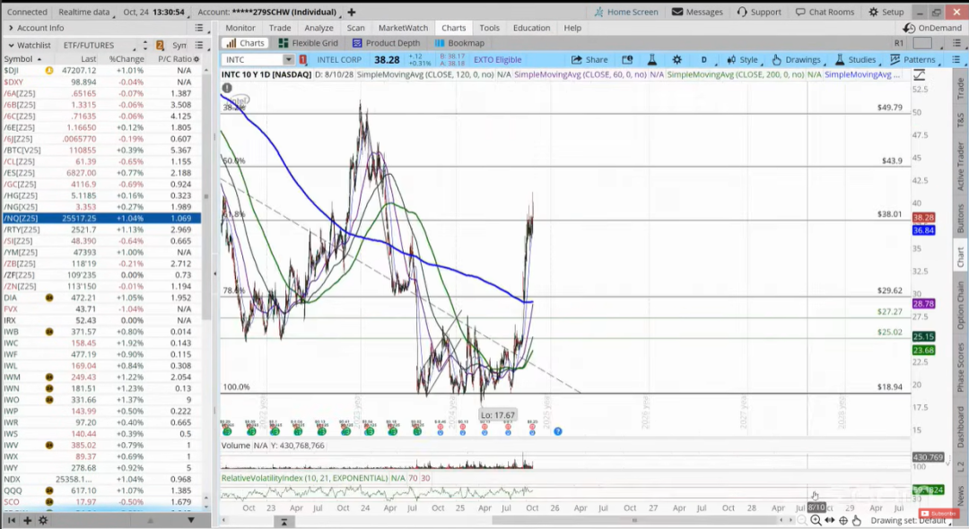 英特尔方面,他维持中性观点,表示当前42至45美元区间已兑现全年预期,不建议追高。UNH与VALE等价值型股票仍保持观察态度,认为应等待财报确认再行动。