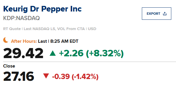 Keurig Dr Pepper (KDP)第三季度每股收益为0.54美元,与市场预期值0.54美元一致;营收同比增长10.7%至43.1亿美元,市场预期值41.5亿美元。该公司公司上调了2025年固定汇率净销售额展望,并重申调整后每股收益预期。该公司计划到2026年底在运营上准备好分拆为两家独立实体。
