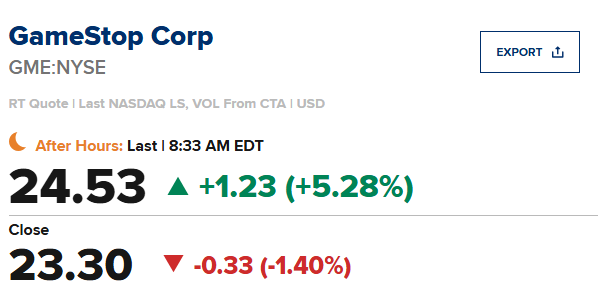 白宫快速反应中心转发了周六发布的关于“主机大战结束”的GameStop (GME)消息,受此消息影响,GME盘前走高。