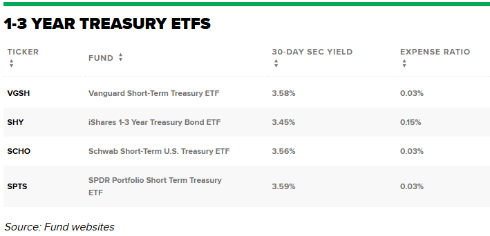 他建议首先持有久期约2年的高质量债券ETF,并搭配1至3年期美国国债ETF。