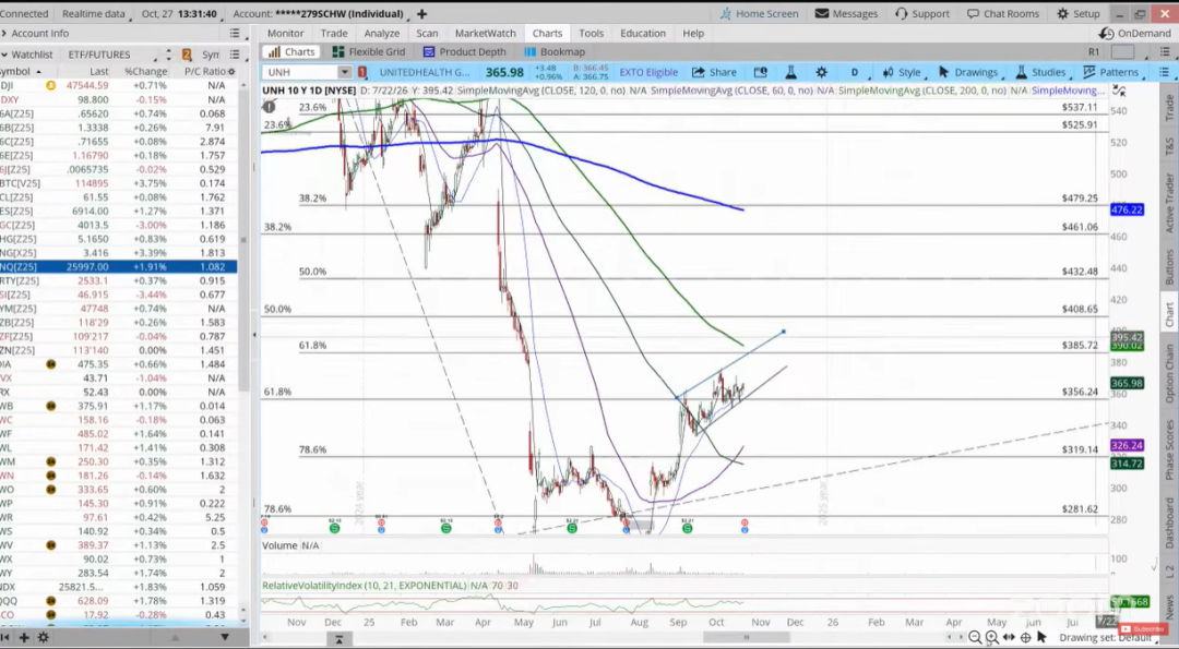 联合健康周一清仓股票,转为用看跌期权保护利润并保留上行参与。该股上涨通道保持良好,后市若回调至400以下仍考虑接回股票。财报前降低股票仓位,以价内期权替代。