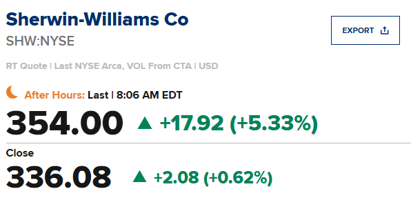 Sherwin-Williams(SHW)第三季度每股收益为3.59美元,比市场预期值3.44美元高出0.15美元;营收同比增长3.2%至63.6亿美元,市场预期值62亿美元。该公司预计25财年每股收益为11.25美元至11.45美元,前值11.20美元至11.50美元,市场预期值11.29美元。