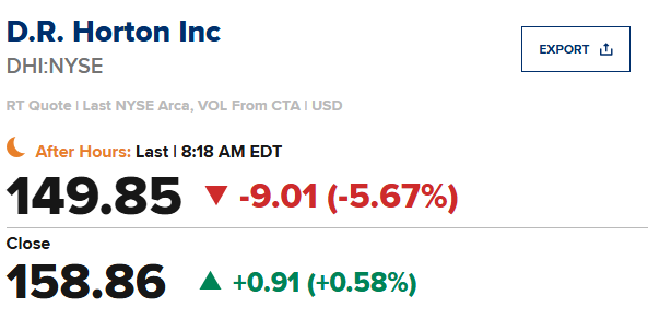 D.R. Horton (DHI)第四季度每股收益为3.04美元,比市场预期值3.27美元低0.23美元;营收同比下降3.2%至96.8亿美元,市场预期值94.1亿美元。