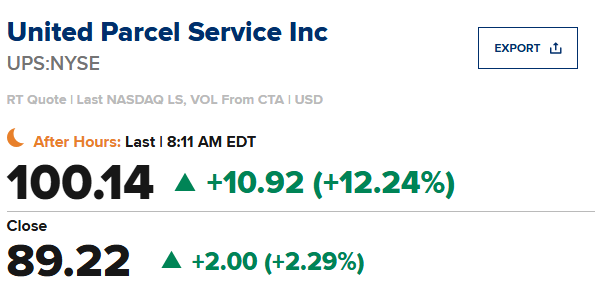 UPS (UPS)第三季度每股收益为1.74美元,比市场预期值1.30美元高出0.44美元;营收同比下降3.7%至214.1亿美元,市场预期值208.4亿美元。该公司公司第四季度业绩指引,预计第四季度的营业收入约为240亿美元,市场预期值238.2亿美元。