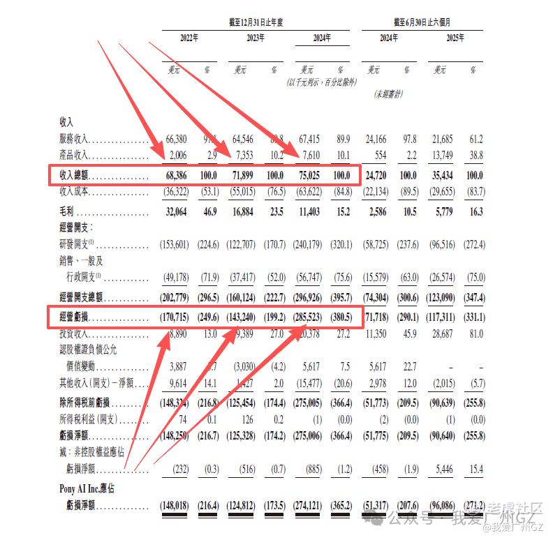 毛利率:22年46.9%一路下滑到24年的15.2%,因为业务组合变了,毛利相对低的自动驾驶卡车和技术授权业务占比上来了,说明公司在商业化初期,为了抢市场,利润先放一边。