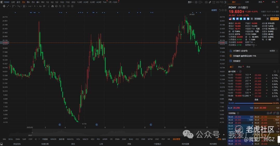 小马智行在美股上市了的,昨天收盘19.68美元
