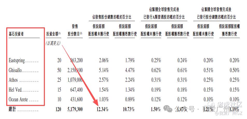 基石投资者拿走了12.34%的货 ,基石非常一般。