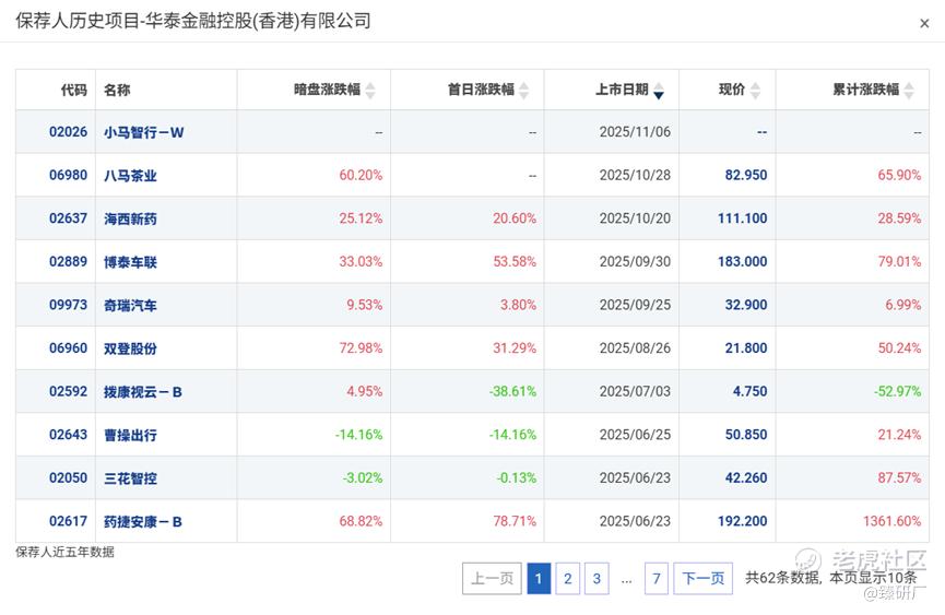 华泰国际历史上作为保荐人参与了60个项目,其中暗盘有31家公司上涨,26家公司下跌,3家公司平盘,破发率43.33%。首日有27家公司上涨,25家公司下跌,8家公司平盘,破发率41.67%,整体胜率较低。今年以来参与了15个IPO项目,其中6个项目暗盘或破发,4个项目累计录得跌幅,项目的综合素质和保荐能力都较为一般。