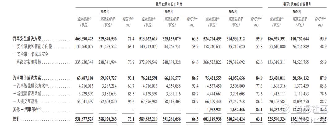 2. 曾经的支柱业务汽车安全解决方案2022年以来不断萎缩,市占率下滑,营收下滑,而且公司不知为何还在不断扩展,导致产能利用率下降明显。