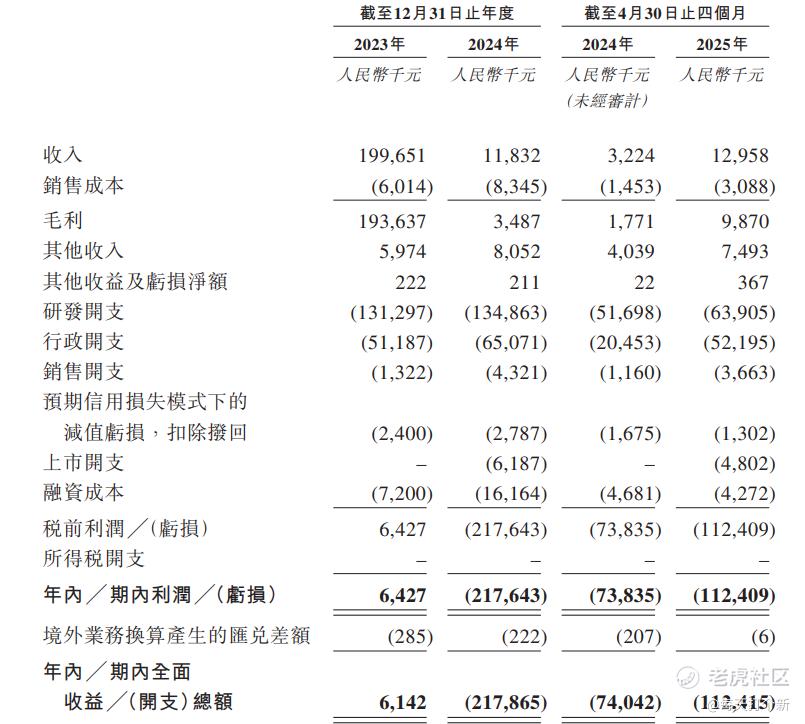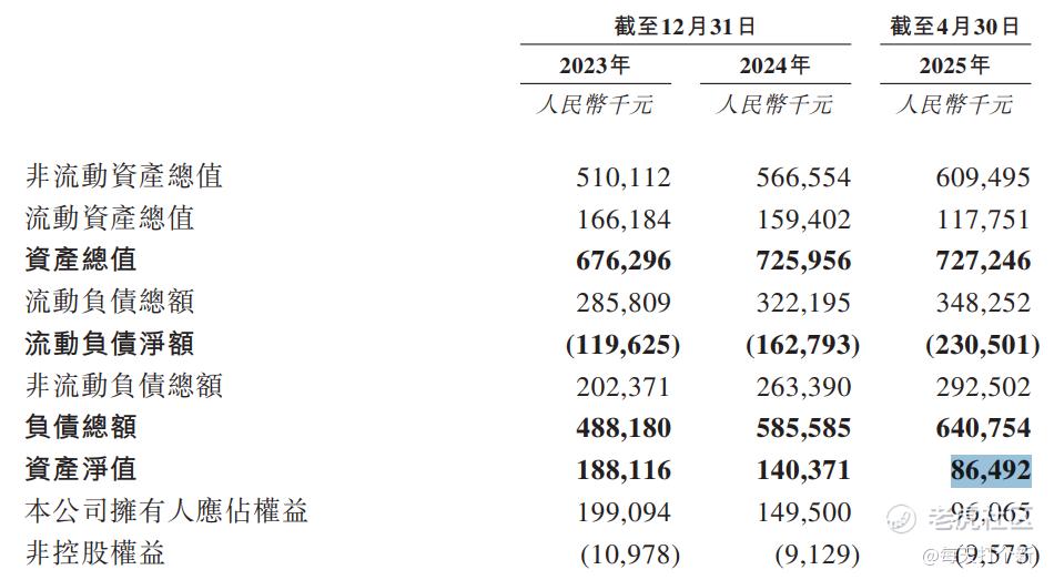 2. 流动比率持续下滑,2025年仅0.3,短期偿债能力极差。截至2025年4 月底,现金及现金等价物仅0.73 亿元,按当前月均研发+行政开支估算,仅能支撑不足6个月的运营。净资产半年缩水40%,再不上市,外加对赌协议,破产警告。