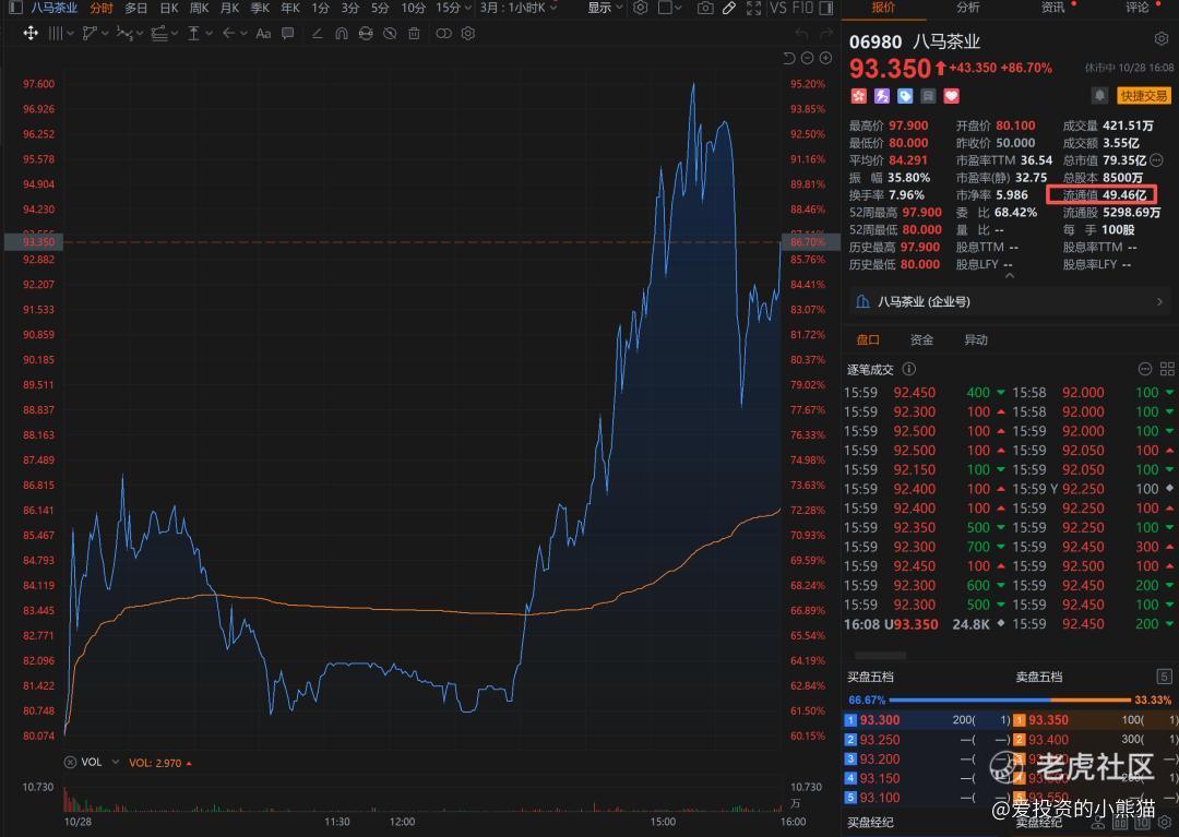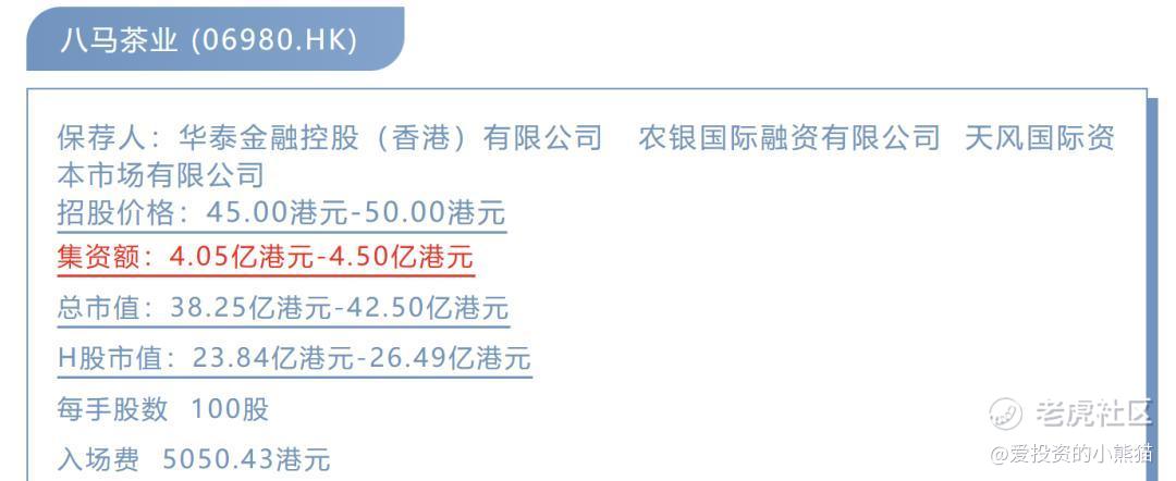 旺山旺水 集资额:5.63亿港元-5.98亿港元,无基石投资者,总市值:53.63亿港元-56.98亿港元,H股市值:21.34亿港元-22.67亿港元,流通盘较小,可能引发短期炒作后的抛售压力,对比八马茶叶基本上差不多,说到底这个票就是个小票你去赌它大小就好了,最近又是来四个新股打起来。很多资金都分流走了。