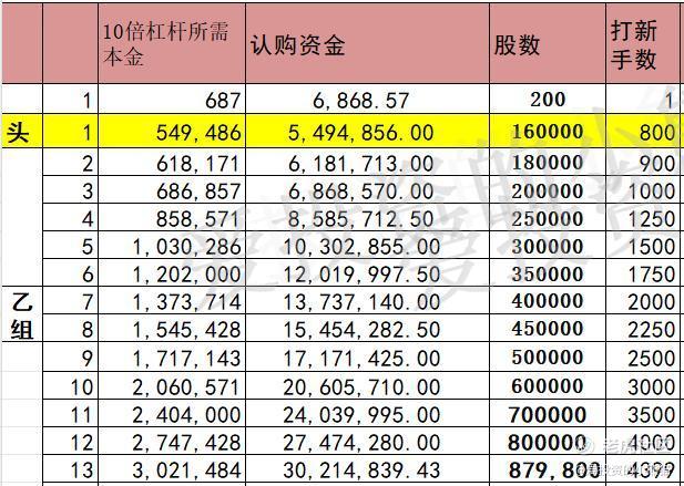 乙头需要认购资金550万,乙组的各档融资所需要的本金还有融资金额对应如下表:
