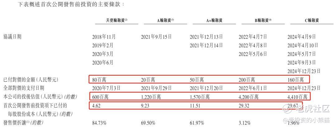C轮(2024年12月):融资1.60亿元后估值44.10亿元,每股成本约29.67元 。