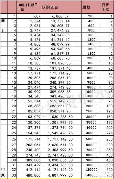 甲组的各档融资所需要的本金还有融资金额对应如下表: