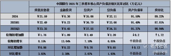 从整体上看,截至9月末,中国银行总资产和总负债分别达到37.55万亿元和34.31万亿元,较期初分别增长7.1%和6.87%,整体负债率为91.38%,较期初下降0.2个百分点,环比下降0.13个百分点。