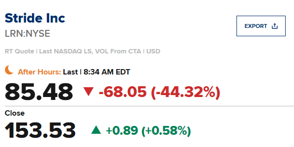 Stride (LRN)第一季度每股收益1.40美元,比市场预期值1.07美元高出0.33美元;营收同比增长12.7%至6.2088亿美元,市场预期值6.1331亿美元。该公司下调了下一财季业绩指引,预计第二季度的营业收入为6.2 - 6.4亿美元,预计第二季度的增长率为6.2 - 6.4亿美元,市场预期值6.4932亿美元6.4932亿美元。该公司下调了26财年业绩指引,预计26财年的营业收入为24.48 - 25.55亿美元,市场预期值26.7亿美元。
