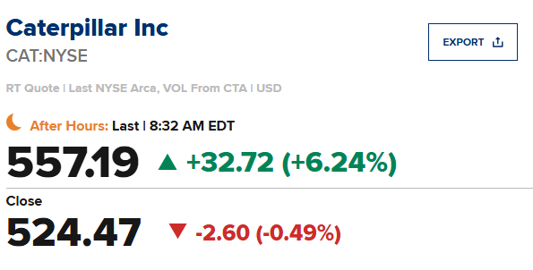 Caterpillar (CAT)第三季度每股收益为4.95美元,比市场预期值4.53美元高出0.42美元;营收同比增长9.5%至176.4亿美元,市场预期值167.7亿美元。