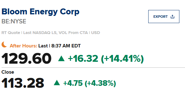 Bloom Energy (BE)第三季度每股收益为0.15美元,比市场预期值0.10美元高出0.05美元;营收同比增长57.1%,至5.195亿美元,市场预期值4.2695亿美元。
