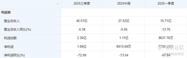 利润方面,第三季度归母净利润为7935.99万元,同比下滑72.58%;前三季度累计实现归母净利润1.69亿元,较2024年同期的6.26亿元大幅缩水72.99%。
