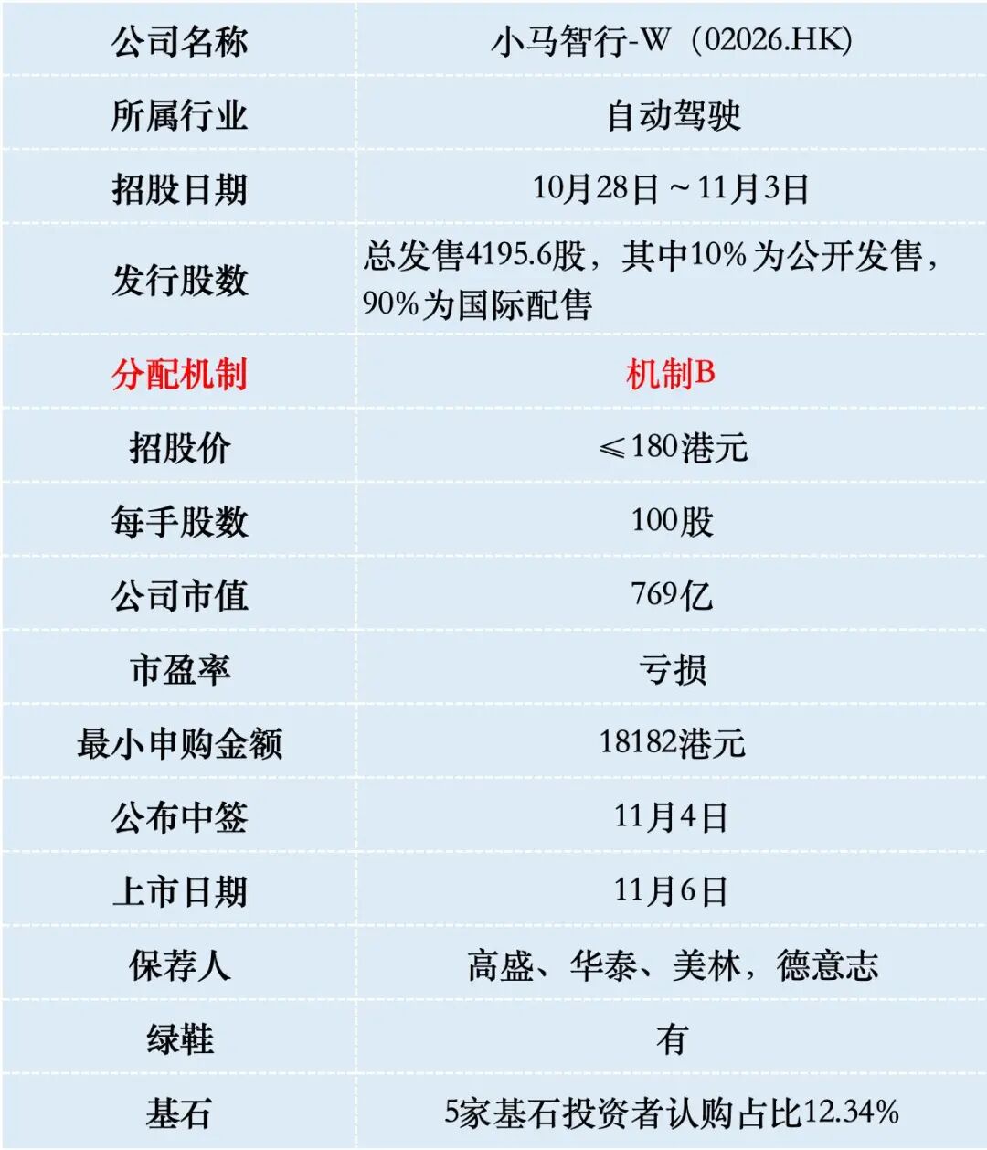 小马智行本次IPO发行股份占全部股份比例的10%,按最高招股价180港元算,可以募资75.5亿,5名基石投资者合共认购9.3亿港元,剩余流通盘66.2亿港元,这个盘子大的吓人。