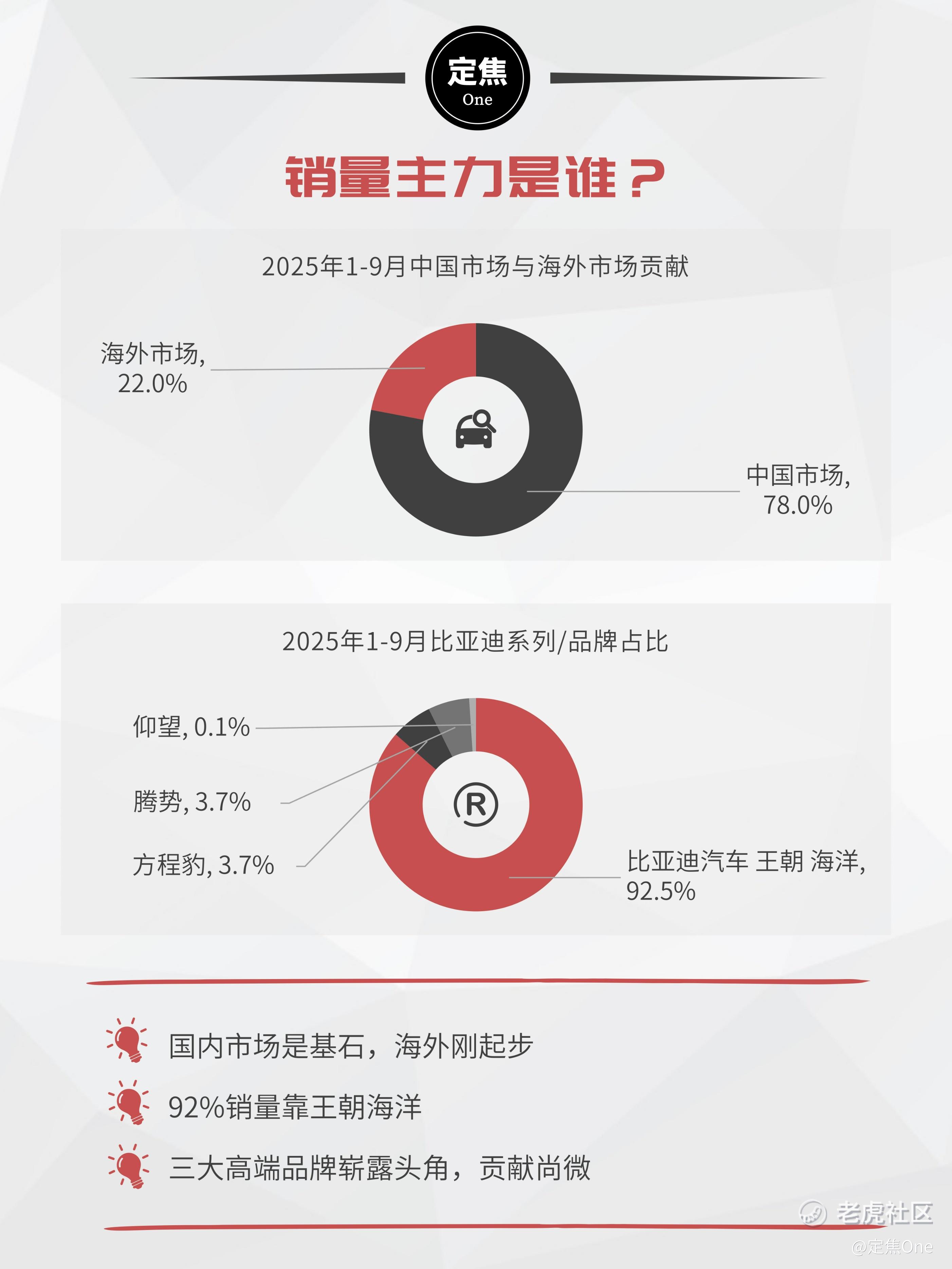 再看销量结构。比亚迪的销量78%来自国内市场,22%来自海外市场。海外市场虽然在增长,但基数还很小。