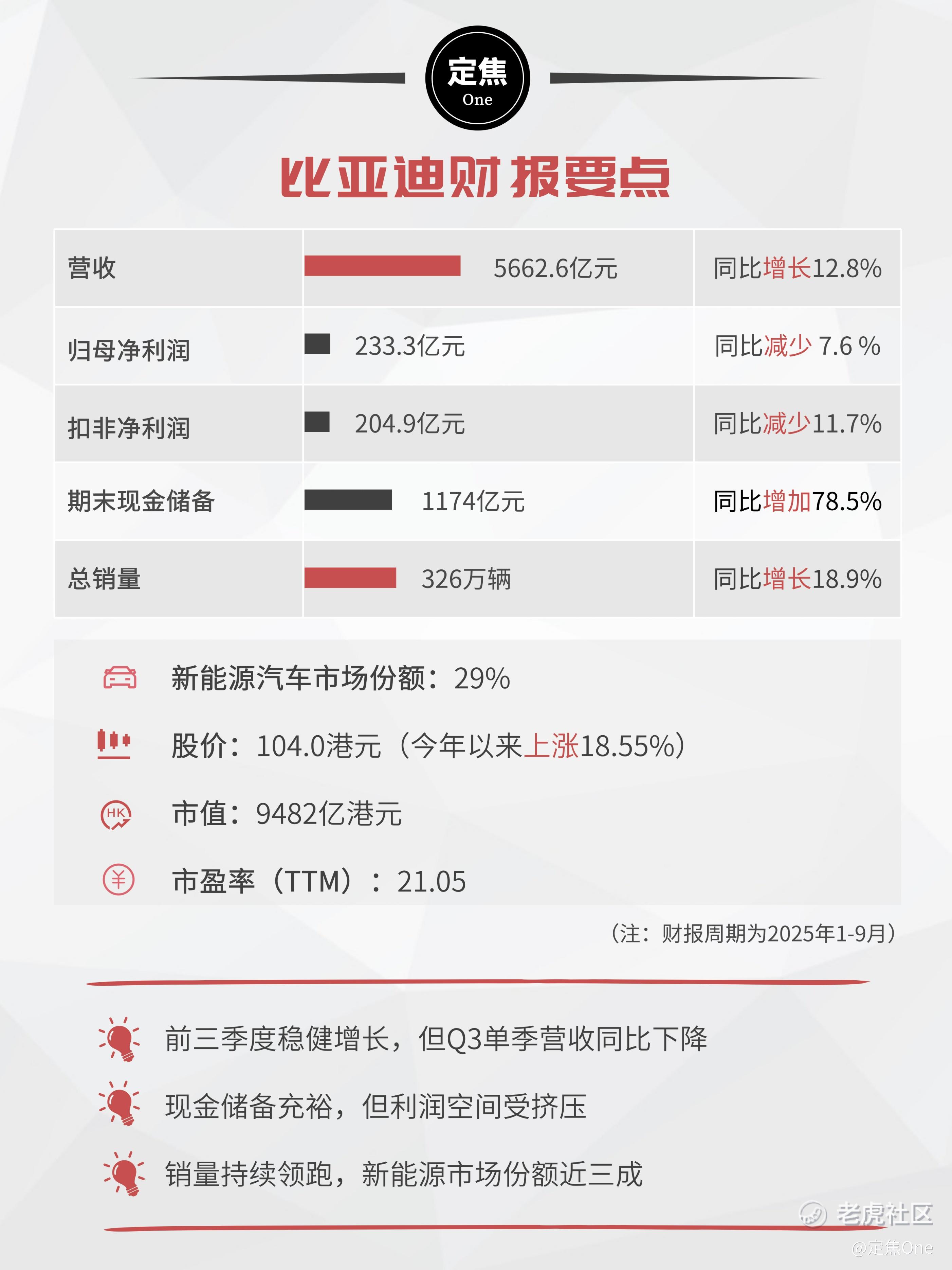 当前股价104港元,今年以来上涨18.55%,市值9482亿港元,市盈率21.05倍。可见资本市场对比亚迪的信心建立在对未来的预期上。