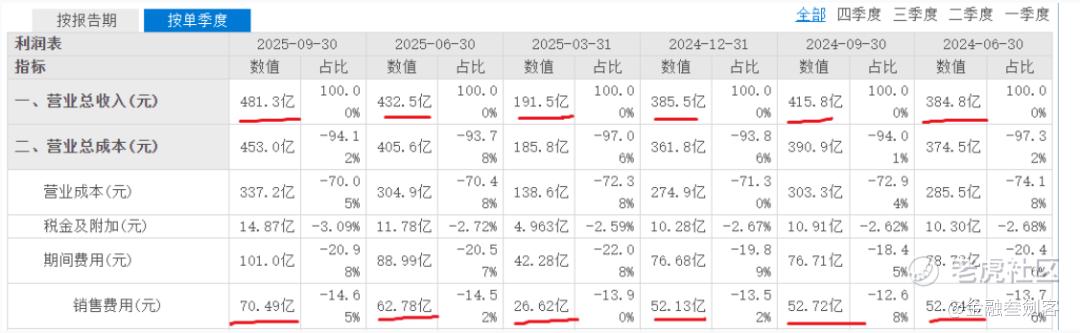 24年Q2到25年Q3,每个季度销售费用率分别为:13.7%、12.6%、13.5%、13.9%、14.5%、14.6%,品牌做起来后,这个会逐步降低的,这是必然的,但也有必要分析下这个数据为什么这么高。