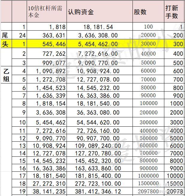 乙头需要认购资金546万,乙组的各档融资所需要的本金还有融资金额对应如下表:
