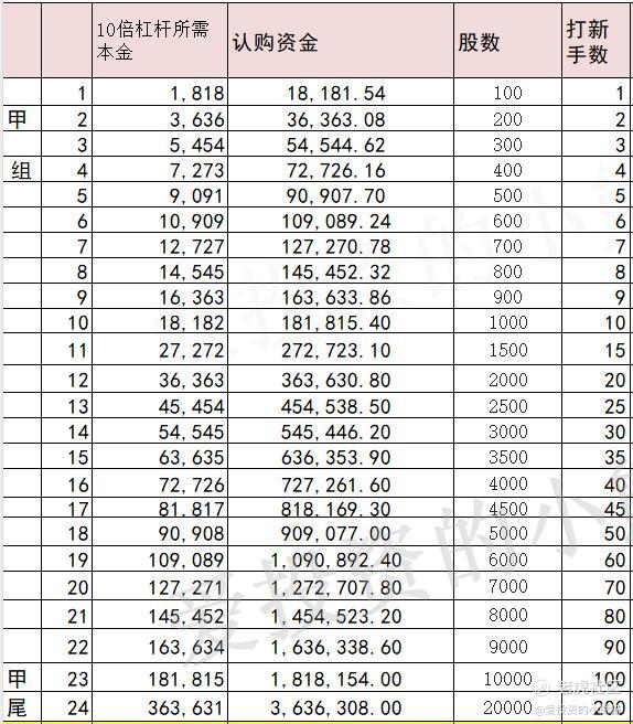 甲组的各档融资所需要的本金还有融资金额对应如下表: