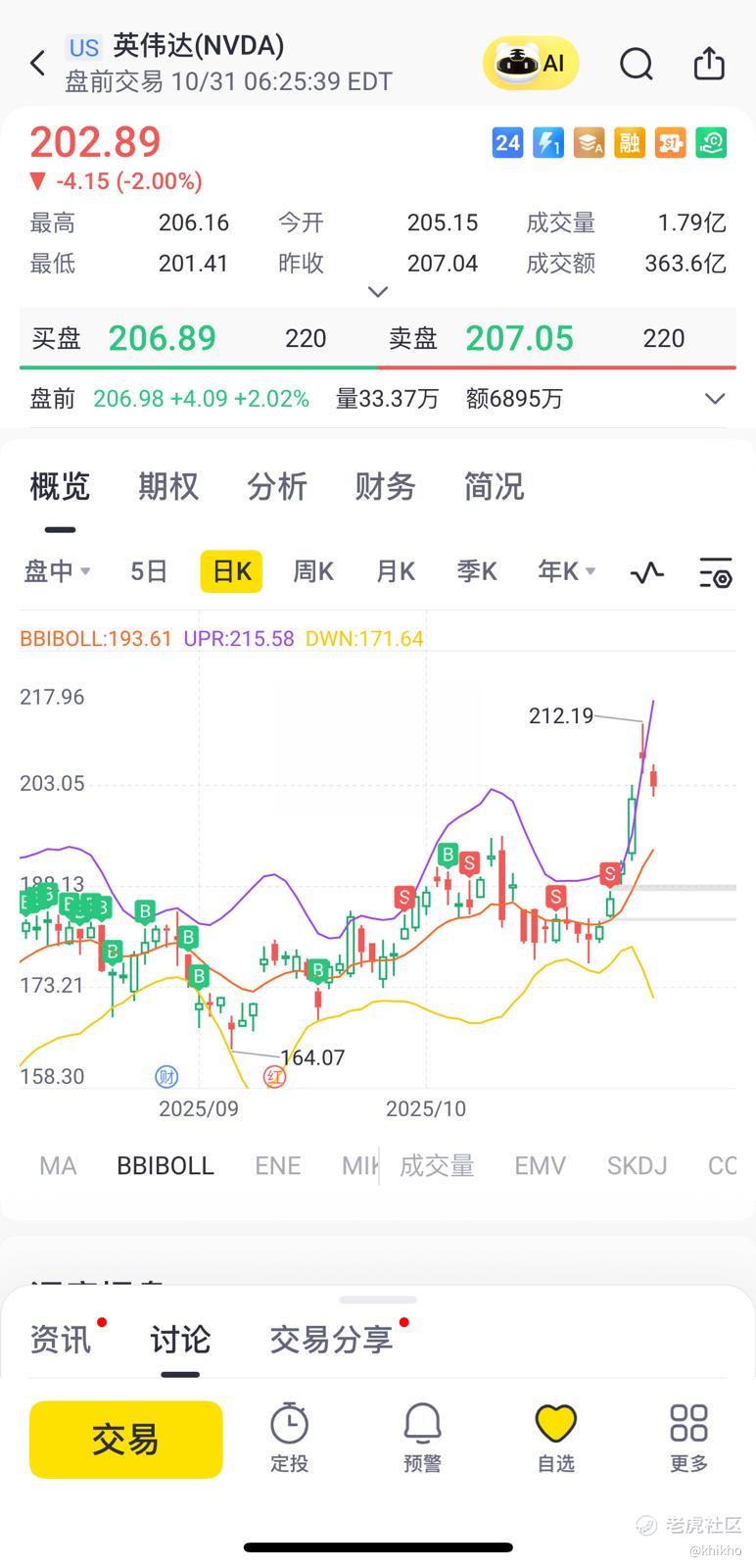 虽然市值暴涨引发“泡沫化”担忧,但英伟达的增长是建立在实际订单支撑,技术领先(GPU + AI),而且还有政府与企业双重需求爆发。根据GTC大会披露数据,英伟达未来五季度数据中心收入指引达4000-5000亿美元,对应2026年预期EPS约9-11美元。英伟达不仅是硬件公司,而是 AI基础设施的垄断者,其增长动力来自 技术护城河 + 需求爆发 + 平台生态 + 资本共振。这么看的话,英伟达的这5万亿的市值,看起来是伴随着合理的估值。那么,目前这206刀一股的价格,现在上车,也好像不需要担心太多。[鬼脸]