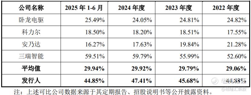 好盈科技的综合毛利率高于卧龙电驱、科力尔、安乃达,低于三瑞智能,主要是应用领域等方面各不相同,以及三瑞智能的营收主要来源于境外客户,产品销售价格较高导致。
