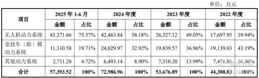 具体来看,2022年至2025年上半年(简称“报告期”),公司来自无人机动力系统的营收占比从39.94%提升至75.57%,占比较大;同期竞技车(船)模动力系统及其他动力系统的营收占比有所下降。