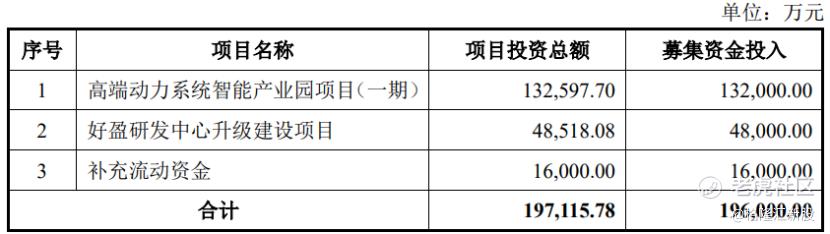 本次IPO,公司拟募集资金19.6亿元,用于高端动力系统智能产业园项目(一期)、好盈研发中心升级建设项目,以及1.6亿元用于补充流动资金。
