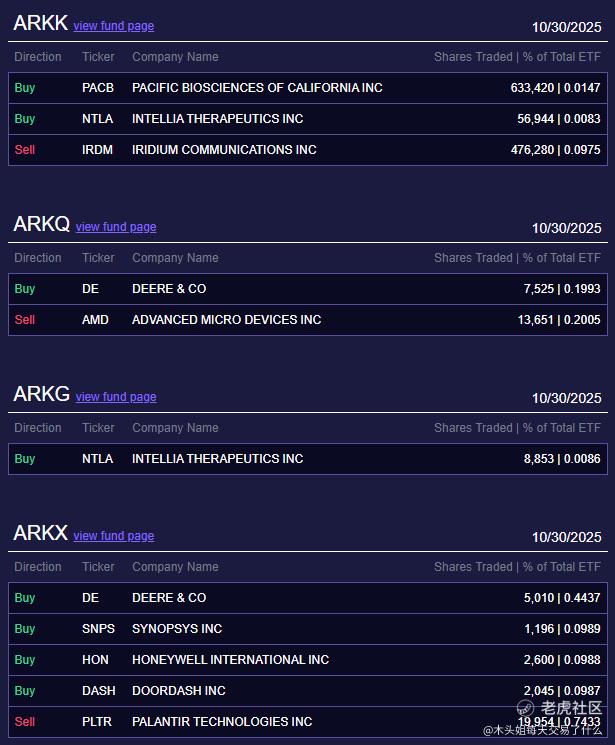 卖出820万美元IRDM、350万美元AMD、390万美元PLTR,PTLR我还放着,木头姐这么快就慢慢卖出。