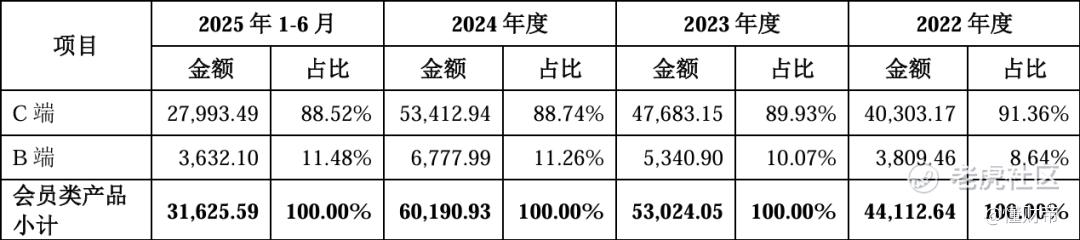其营收结构较为单一,报告期内,会员类产品收入占总营收比重,分别为85.09%、85.77%、84.98%、84.25%。