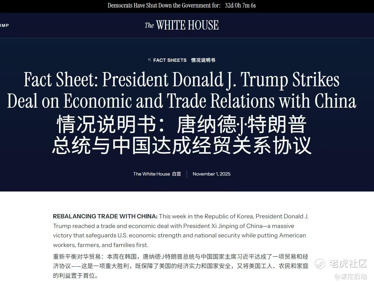 这份协议虽然没有解决所有结构性矛盾(如AI芯片与先进制造领域限制仍在),但在贸易层面已形成阶段性“停火”。 结果是:关税回落、供应链紧张缓解、稀土和农产品市场重新开放。
